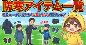 ネックウォーマーや手袋、インナーなどがあるだけで、冬の練習はかなり快適になります。